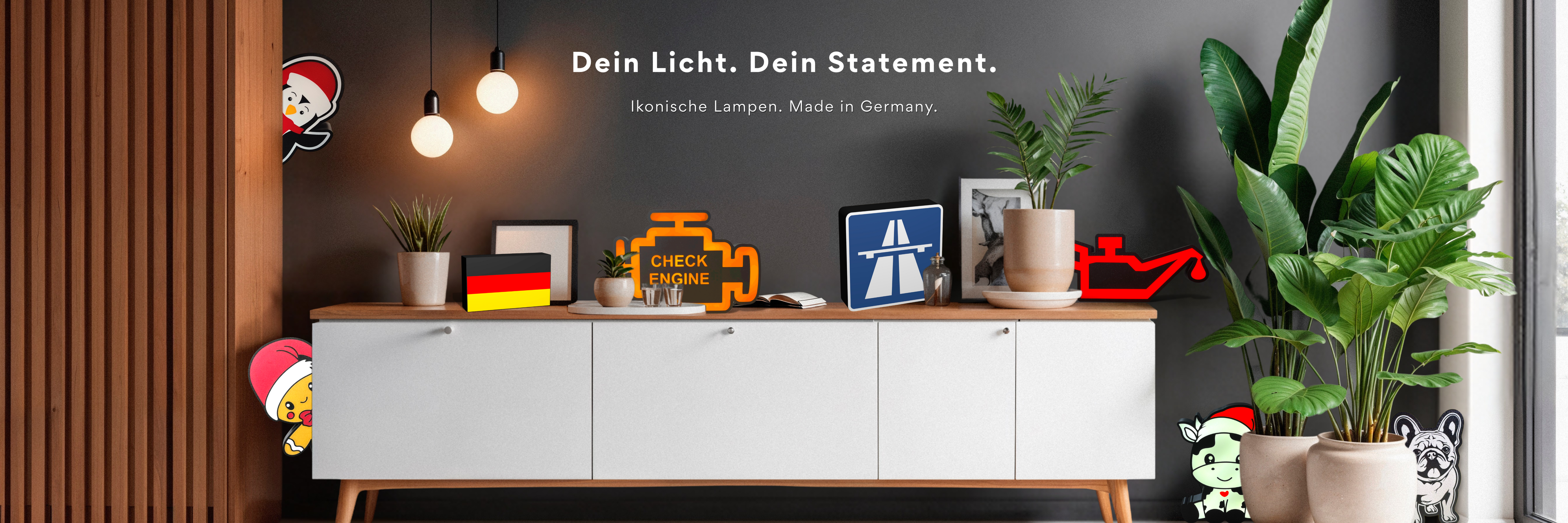 Wir stehen auf klare Motive und starke Designs. Darum bekommst du bei uns nicht nur die bekannten Klassiker, sondern auch individuelle Wünsche umgesetzt. Egal ob Symbol, Logo oder eigenes Motiv, wir fertigen alles sauber und passgenau für dich. Jede Lampe entsteht mit dem Anspruch, genau deinen Geschmack zu treffen.