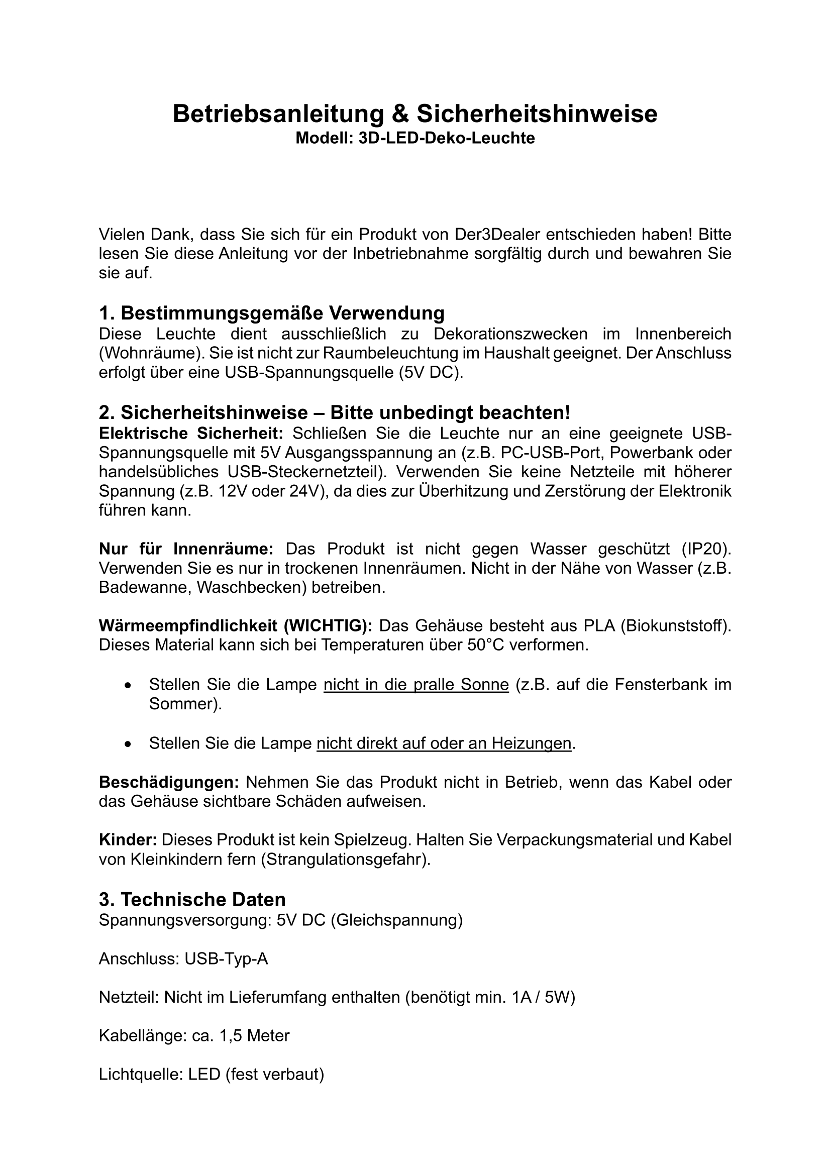 Betriebsanleitung, Sicherheitshinweise und EU-Konformitätserklärung