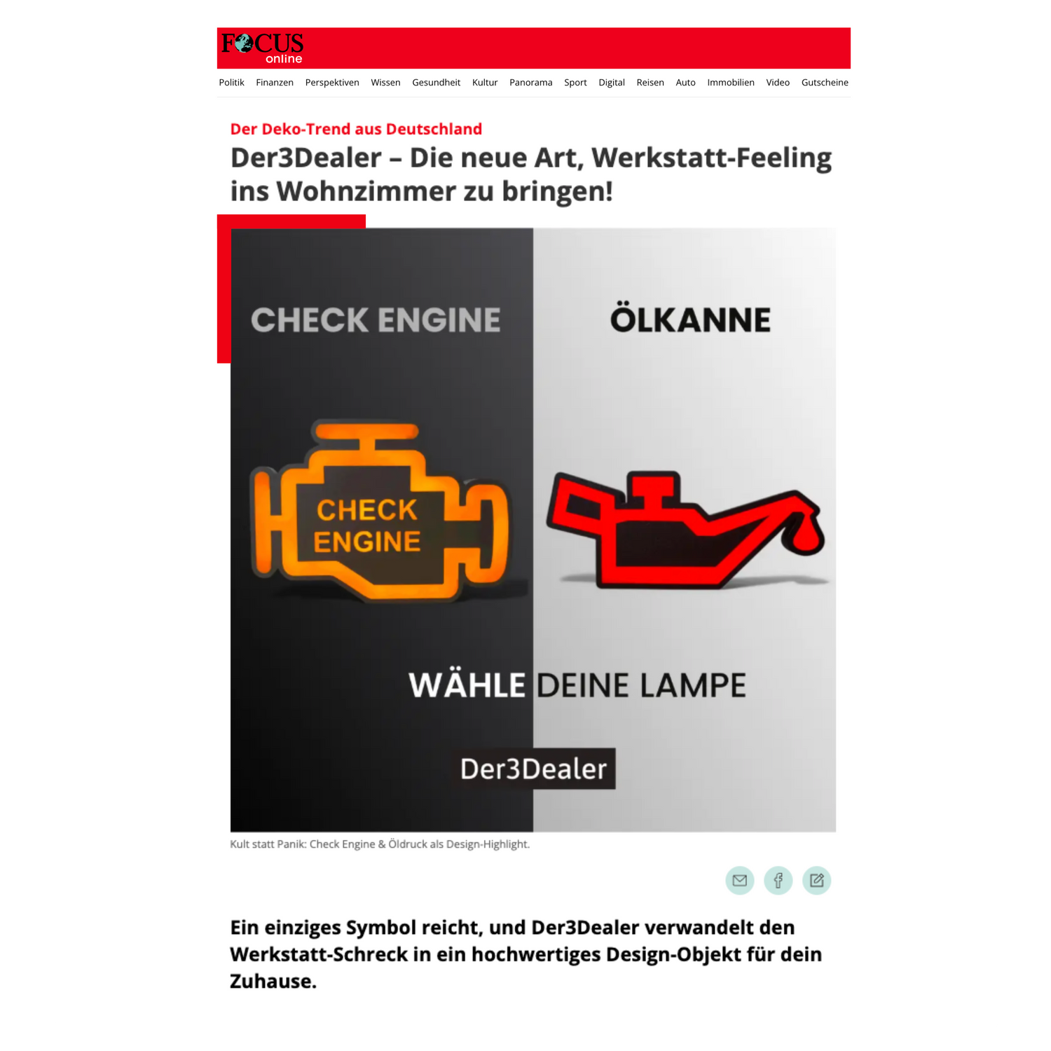 "Ein einziges Symbol reicht, und Der3Dealer verwandelt den Werkstatt-Schreck in ein hochwertiges Design-Objekt. [...] Eine Innovation, die moderne 3D-Druck-Technik mit echter Automobil-Leidenschaft verbindet."
